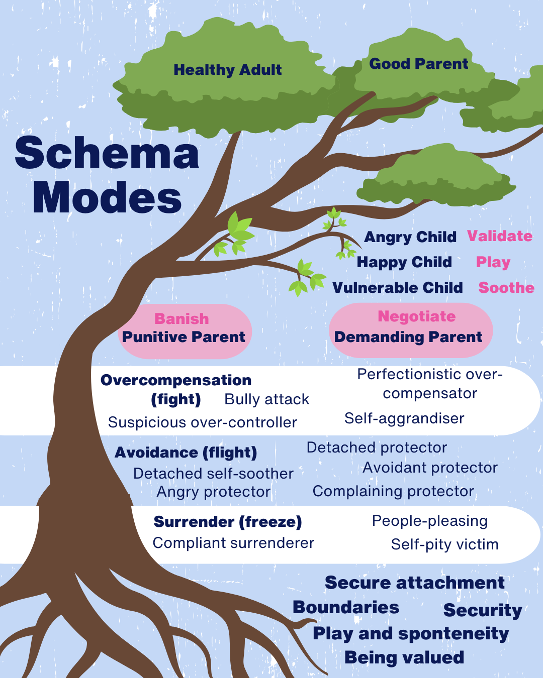 In Schema Therapy, we often look at how early unmet needs shape long-lasting beliefs about ourselves and the world. These are known as schemas — and they influence how we cope when we're distressed or triggered.