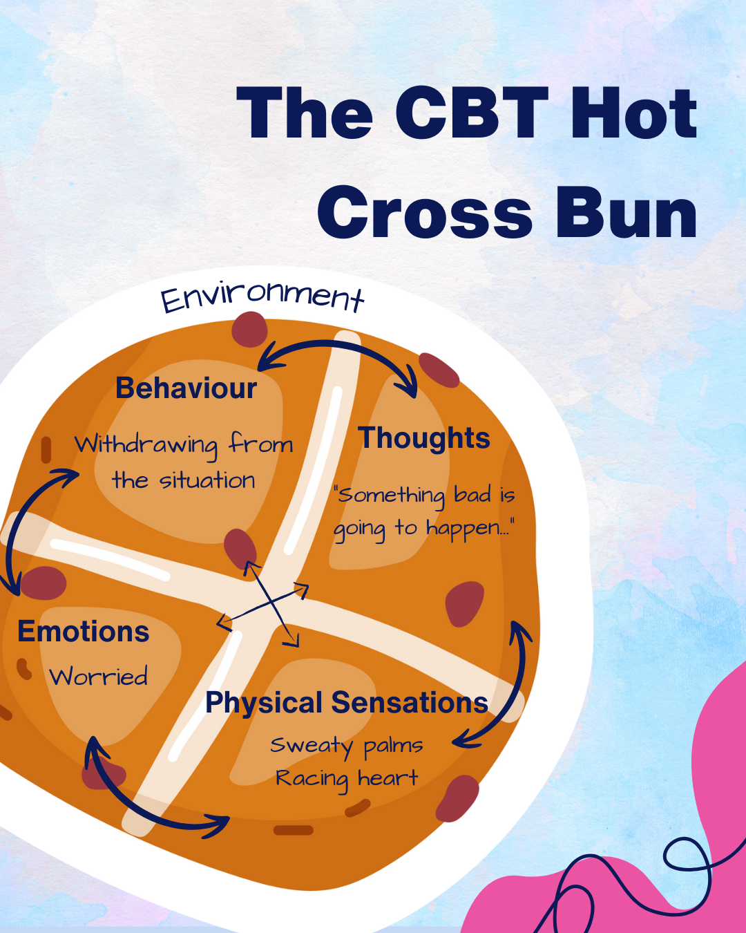 The CBT Hot Cross Bun illustrates how emotions can come about.